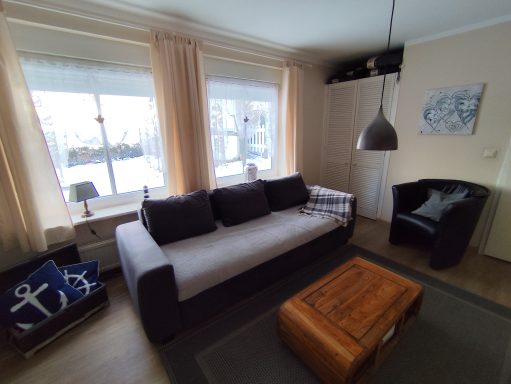 Diese gemütliche Ferienwohnung bietet auf 41 qm alles, was Sie für einen entspannten Urlaub benötigen. Sie verfügt über ein Schlafzimmer mit einem komfortablen Doppelbett (1,80m x 2m) mit getrennten Matratzen und eine Schlafcouch - ideal für bis zu 3 Personen sowie ein Kind bis 12 Jahre. Die Terrasse sowie der Garten laden zum Entspannen im Freien ein. Zur Ausstattung gehören WLAN, Mikrowelle, Airfryer, Kühlschrank, Doppelkochplatte, Eierkocher und Wasserkocher, sodass Sie sich problemlos selbst versorgen können. Bettwäsche und Handtücher sind nicht im Preis inbegriffen, können jedoch gesondert geordert werden. Ein Reisebabybett steht ebenfalls zur Verfügung. Der Parkplatz ist im Preis inbegriffen. Haustiere sind gegen Aufpreis herzlich willkommen. Die Wohnung liegt oberhalb der Strandpromenade von Sassnitz in direkter Nähe zur Altstadt. Hier hat man einen fantastischen Blick auf Meer und Hafen.